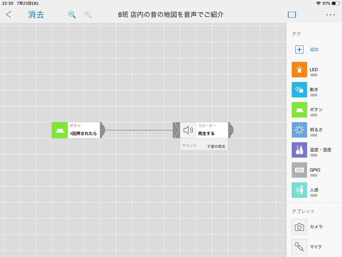 今回の授業を実施した背景は?この授業のねらいと目標は?使用機材/素材授業日程と授業の様子1~2時限目 事前情報収集3~4時限目 フィールドワーク8時限目 中間報告会12~14時限目 設置本番【各班の考えたアイデア】『人感 まねき猫!』『わくわく!優しい!おすすめメニュー紹介』『らくらく!便利!呼び出し機』『店内にある昔の地図を音声でご紹介』15時限目 振り返り児童のコメント先生のコメント