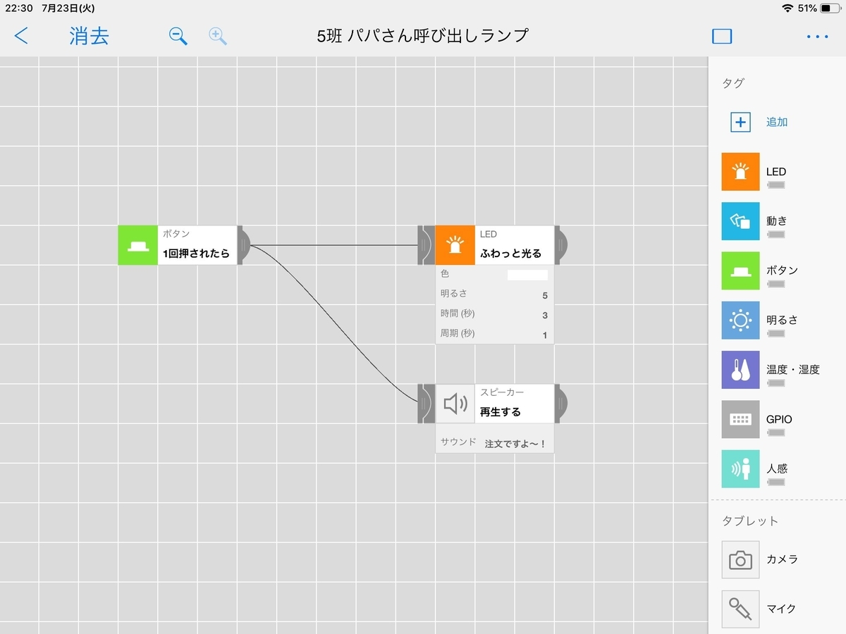 使うMESH:人感ブロック、LEDブロック、明るさブロック、スピーカーブロック
