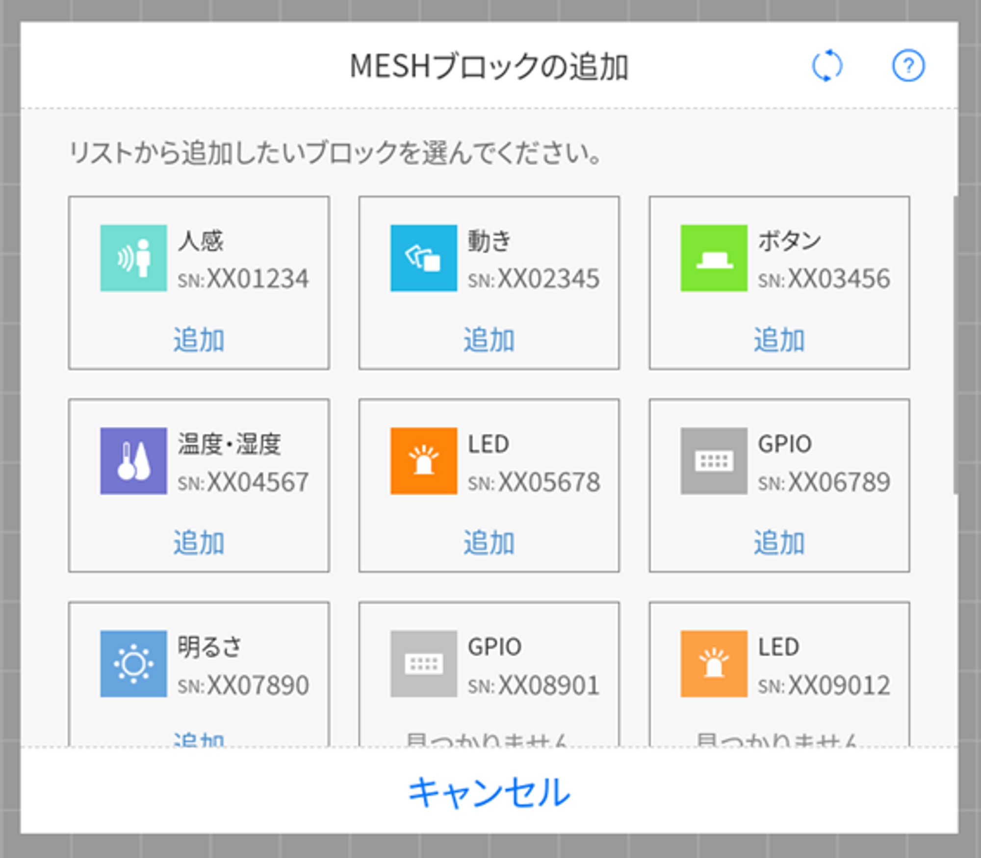 MESH ブロックを MESH アプリに追加する際に、以下の画面のように選んで追加できるようになりました。
